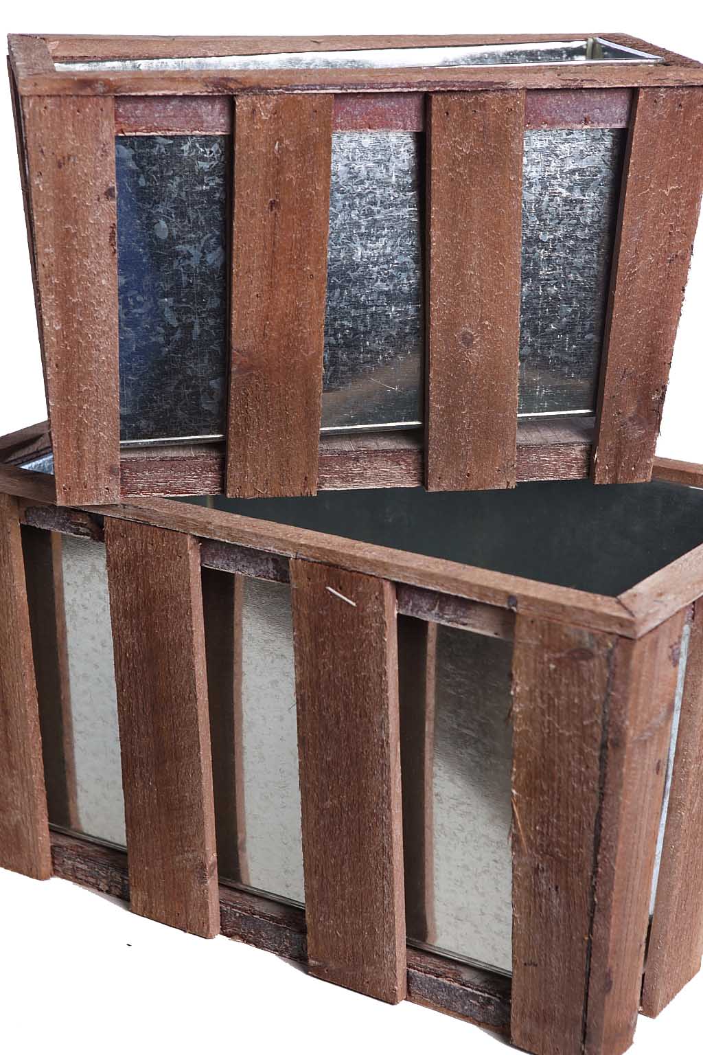 MACETERO MADERA Y LATON X2