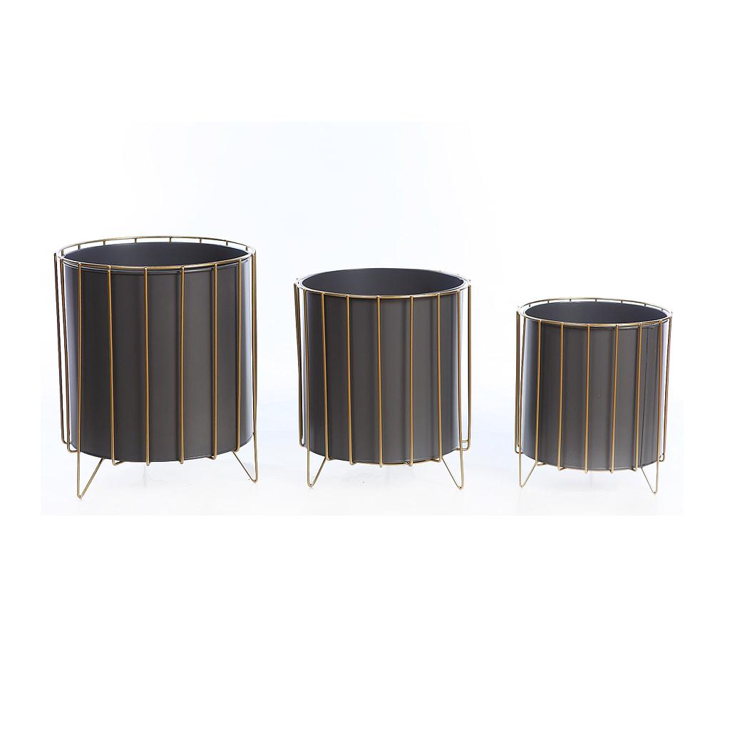 SET 3 MACETEROS PIE METAL DORADO 33CM